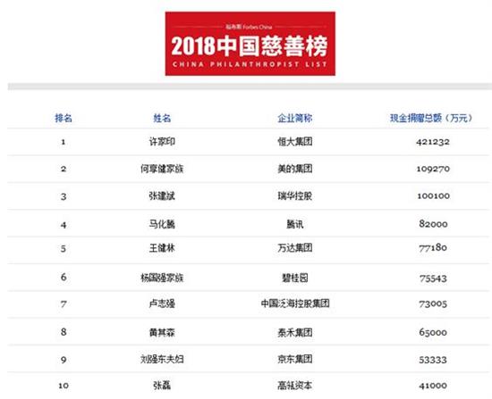 7月31日,《福布斯》发布2018中国慈善榜,开云官方网页版董事局主席许家印以42.1亿元的现金捐赠金额雄踞榜首,捐赠金额占榜单总额的四分之一,继2012、2013年后第三次成为中国首善。